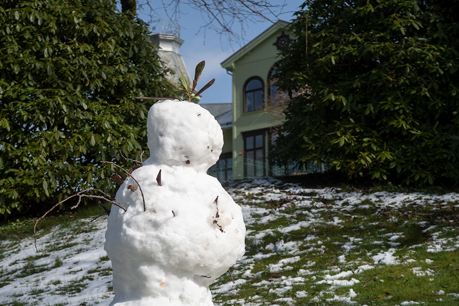 Et snøhode gjør store øyne ved apeskrekken som nå nærmer seg en alder av 20 år.