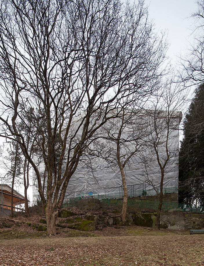 Foran fasaden mot vest skal de fleste trærne bort; tre furuer, tre platanlønn, en spisslønn og ei bjørk.