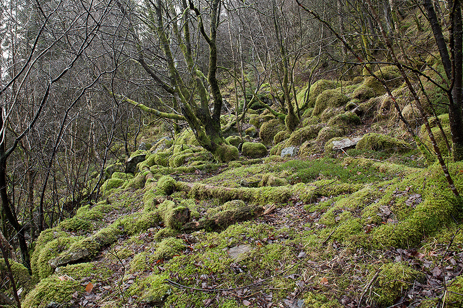 I skråningen ovenfor rasvollen er det en stor ur og temmelig ufremkommelig.