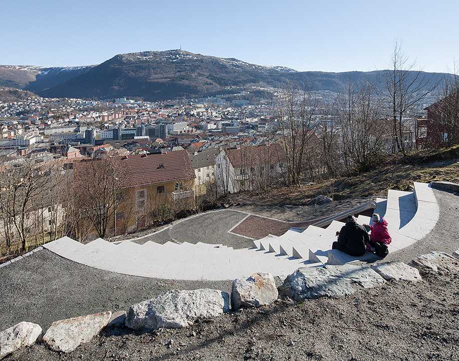 I tilknytning til den nye delen av Løvstien er det anlagt et amfi med utsikt mot Kronstad.