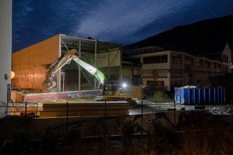 Mye av bygningsmassen på meieriområdet er forvandlet til hauger av stein, støv og metall. I november var jeg under jorden og så gatekunst i trange korridorer. Nå kan den betraktes på avstand.