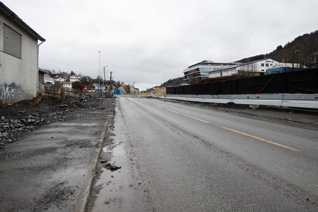 Ved meieriet (nedlagt) er spuntingen ferdig. Der er Kanalveien midlertidig tilbake i sin gamle trasé.