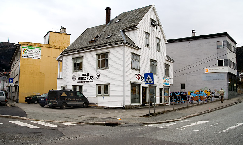 Før bussruten (midlertidig?) ble lagt om i forbindelse med bygging av bybanen, ble bygget til Minde trelast/Gulvspesialisten i Minde Allé revet.