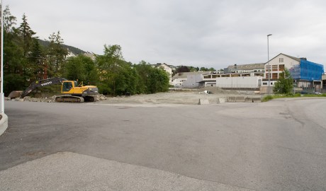 Det ser ut til å drøye med byggetrinn 2 i Kanalveien 52. Nå er tomten planert, så her blir det nok parkeringsplasser — inntil videre.