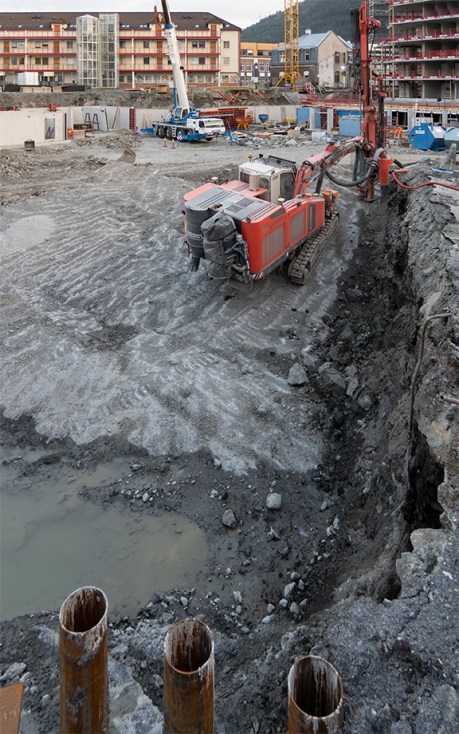 Det legges fundamenter for hus B i byggetrinn 3. OBOS Kronstadparken.