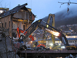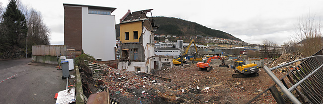 Flere bilder fra rivingsprosessen er publisert på Origo-sonen Bilder av Bergen. Klikk på bildene under for å komme dit: