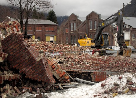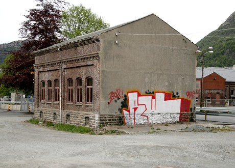 Ved Inndalsveien er bygningen som rommet silketrykkeriet revet. Det samme gjelder en teglstensbygning som lå like ovenfor.