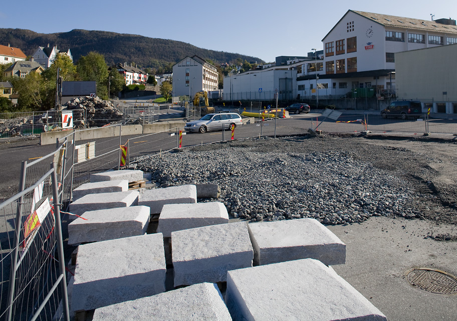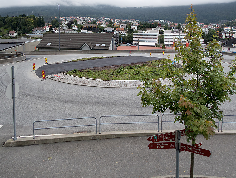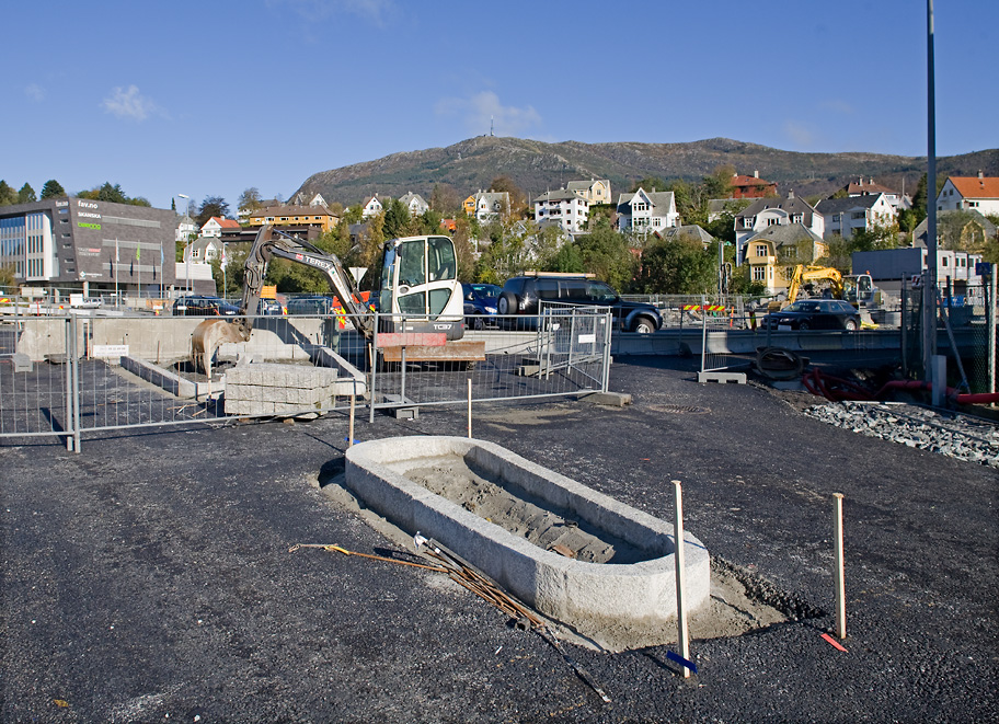 Posted by alfedgar in Mindemyren.Tags: brostein, grøntanlegg, Minde Allé, rundkjøring, veiarbeid