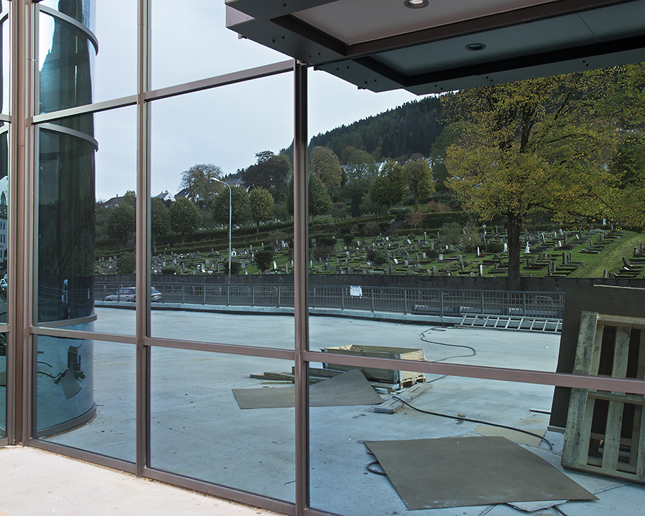 Nybygget i Kanalveien 11 speiler Solheim kirkegård som ligger på motsatt side av Fjøsangerveien.