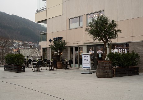 I nybygget på høyskolen er det kommet en hjørnekafé inn mot Kronstadplassen. Foreløpig er den åpen en begrenset tid midt på dagen.