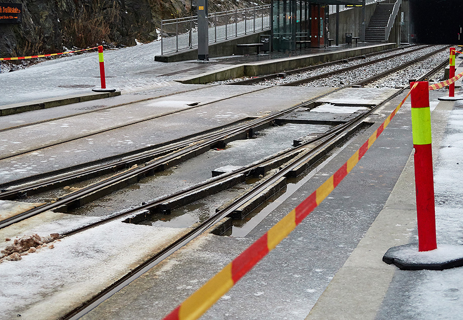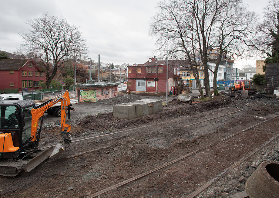 Noen av skinnene ble gravd opp i mai 2009 i forbindelse med bygging av Bybanen.