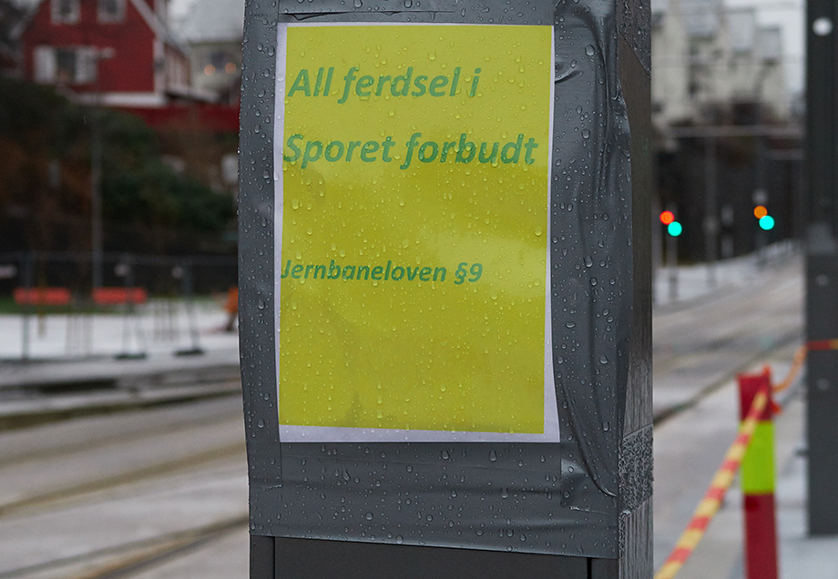 (Lov om anlegg og drift av jernbane, herunder sporvei, tunnelbane osv … §9b: Det er forbudt for publikum å oppholde seg på jernbanens område som ikke er beregnet for publikum;)