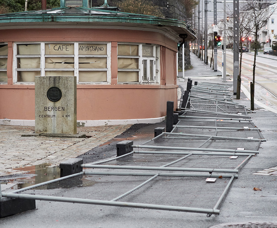Det «midlertidige» gjerdet omkring Ambrosia Tønnesens plass har lagt seg ned. Kanskje slitent etter å ha stått så lenge.