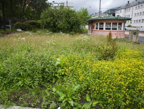 Ingen har stelt grøntanlegget på Ambrosia Tønnesens plass i år. Men frodig er det blitt.