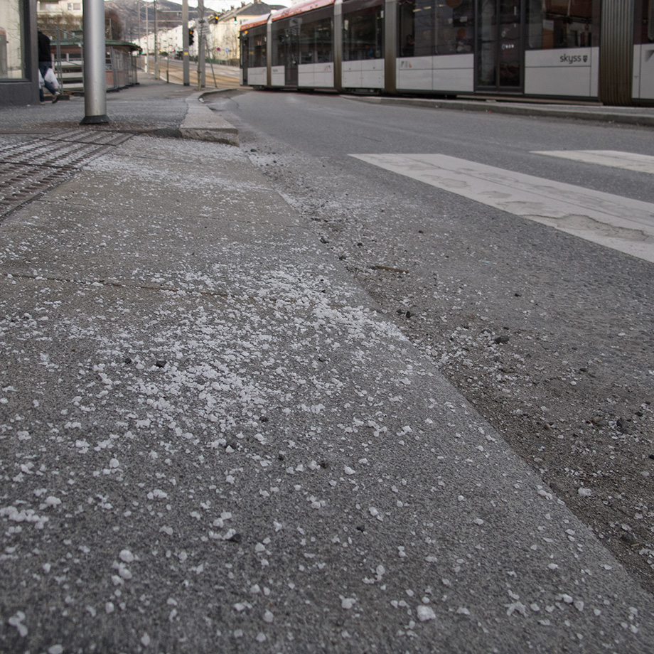 Tørt på bakken. Og varmegrader. Likevel er det hvitt på bakken om morgenen — og resten av dagen.