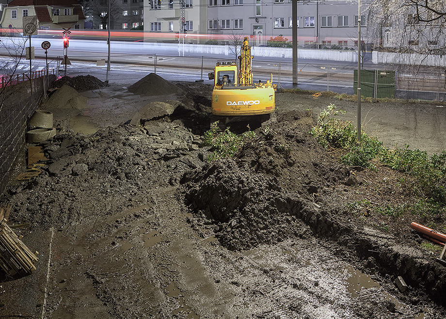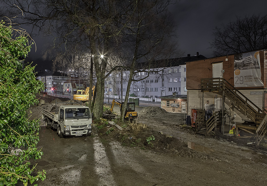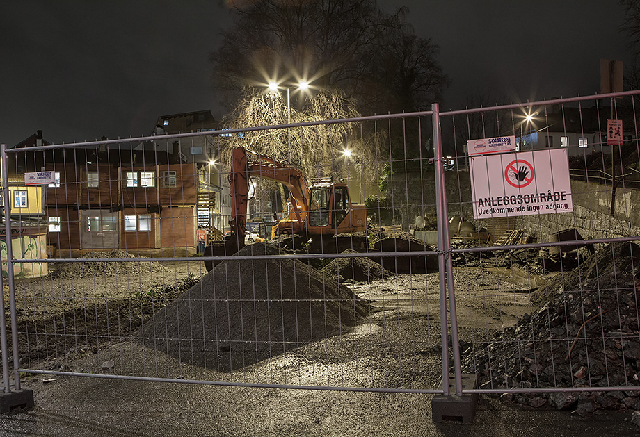 Små og store maskiner er i ferd med å omkalfatre Ambrosia Tønnesens plass.
