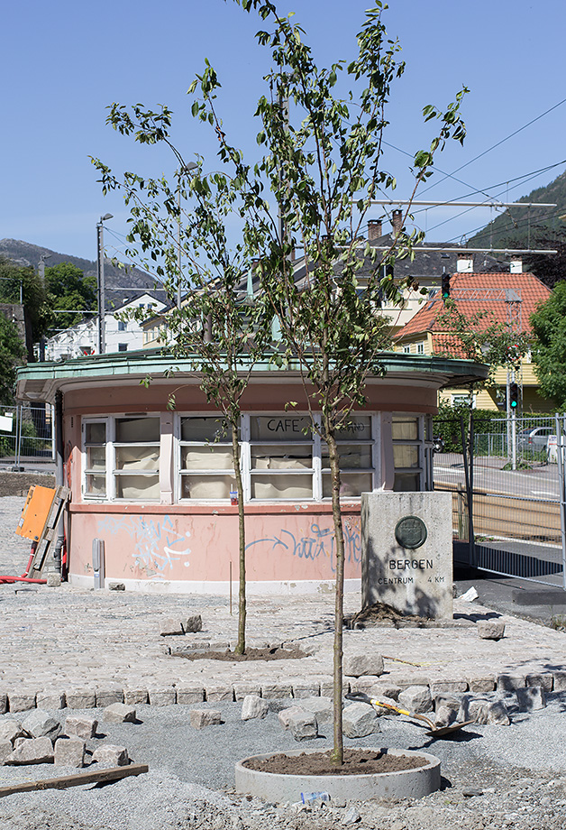 Ambrosia Tønnesens plass nærmer seg ferdigstillelse. I dag ble fem kirsebærtrær plantet.