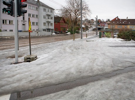 En formidabel isbre må forseres for å krysse Ambrosia Tønnesens plass på Wergeland.