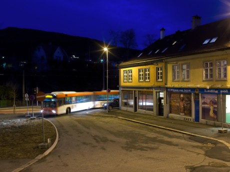 Bussen bruker i denne perioden den gamle trikkesløyfen til å snu på ferden tilbake mot Nesttun.