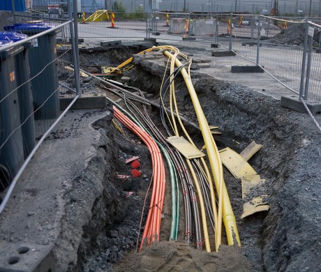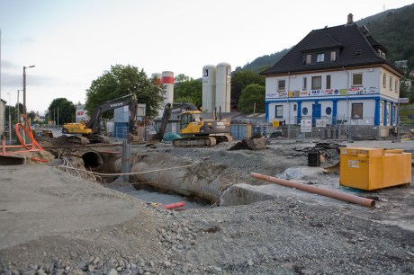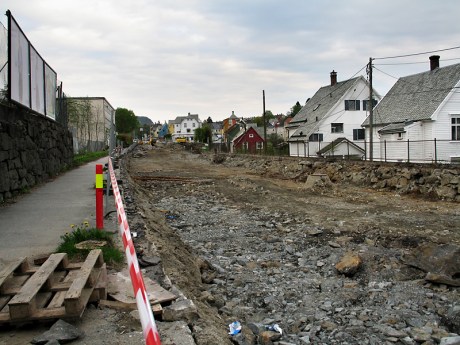 Sørligste del av Inndalsveien er gravd opp der bybanen skal komme.