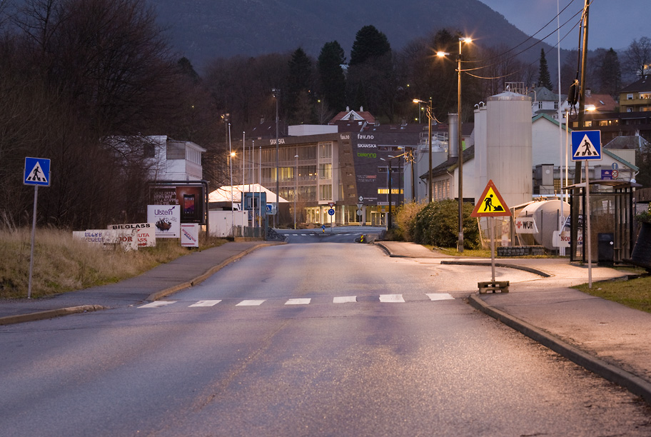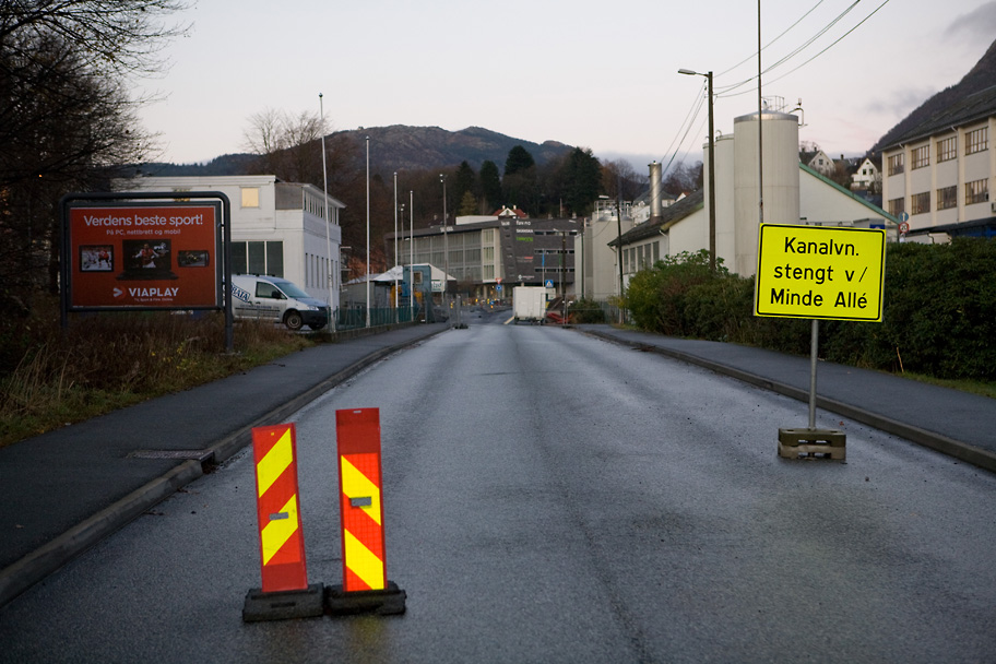 I lengre tid var Kanalveien stengt ved meieriet på grunn av arbeidet med rundkjøringen i krysset Kanalveien / Minde Allé. Her er et bilde fra 6. november: